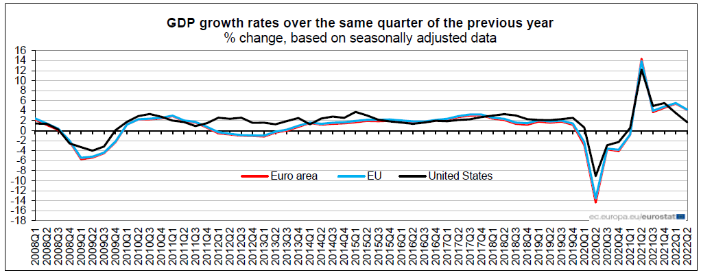 According to the latest Eurostat figures, GDP in the eurozone increased by an annual rate in the second quarter 4,1%. That seems like an excellent growth figure, but on the other hand, inflation has also risen sharply. In August, inflation in the eurozone was even higher on average 9,1% on an annual basis, which means that real GDP in the currency union is negative. More than one hundred percent of the growth of the economy is attributable to rising prices, which means that we can answer this question with yes. Inflation is overshadowing economic growth, which means that the real economy is already shrinking.