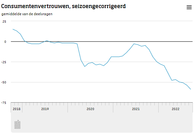 If consumers have less confidence in the economy or in their own financial situation, they are more likely to keep their hands on their wallets. And this is reflected in the figures from Statistics Netherlands, because consumer confidence in the Netherlands is at an all-time low Dropped. With a score of -59, confidence in August was well below the average of -9 over the past two decades. Consumers' willingness to buy also declined. Especially with large purchases, people have become much more cautious, because more and more people simply have no money left at the end of the month.