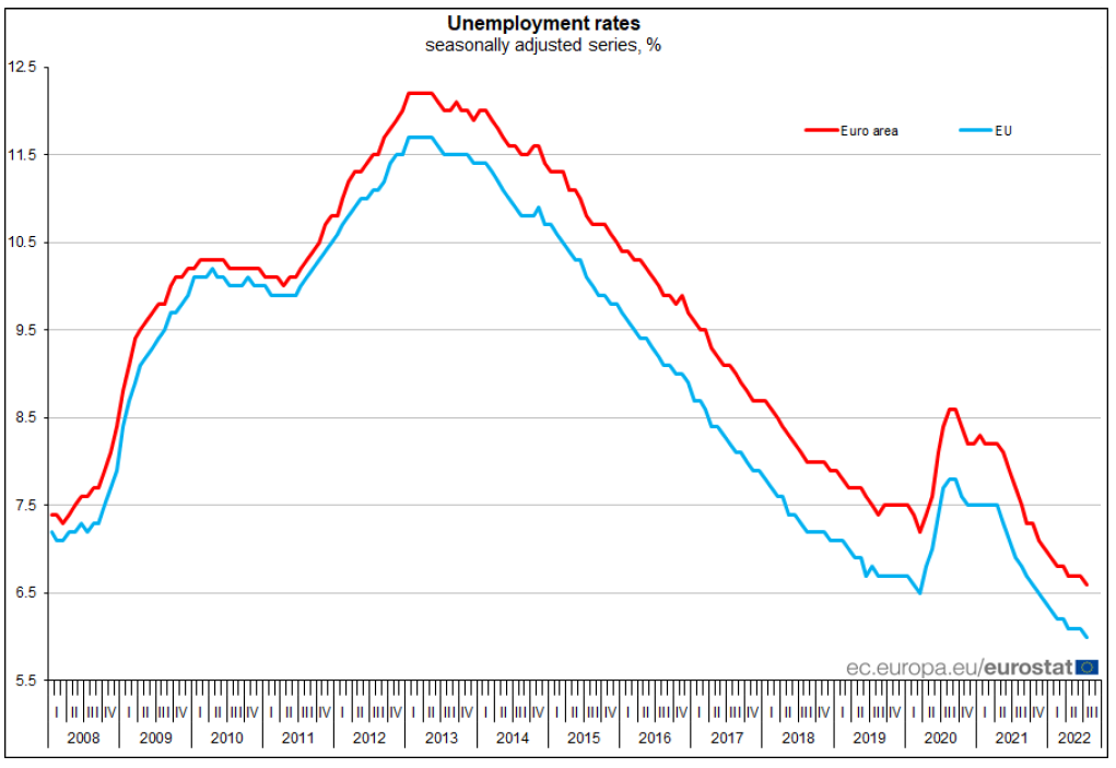 According to the latest Eurostat figures, unemployment in the eurozone reached a new record of only 1000 in July. 6,6%. As a result, unemployment is currently even lower than before the 2008 financial crisis. The coronavirus pandemic caused a sudden rise in unemployment, but all the monetary and fiscal stimulus measures kept the number of bankruptcies low and jobs are up for grabs. According to the UWV, there is now even a Shortage of staff.