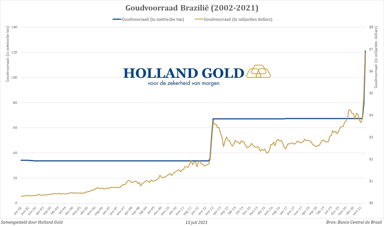 Brazil has also recently added gold to its reserves. New Figures of the central bank show that the country started buying gold in May and that it added to that in June. In May, it was a purchase of 11.94 tonnes and in June, the country even added 41.8 tonnes of the precious metal to its reserves.