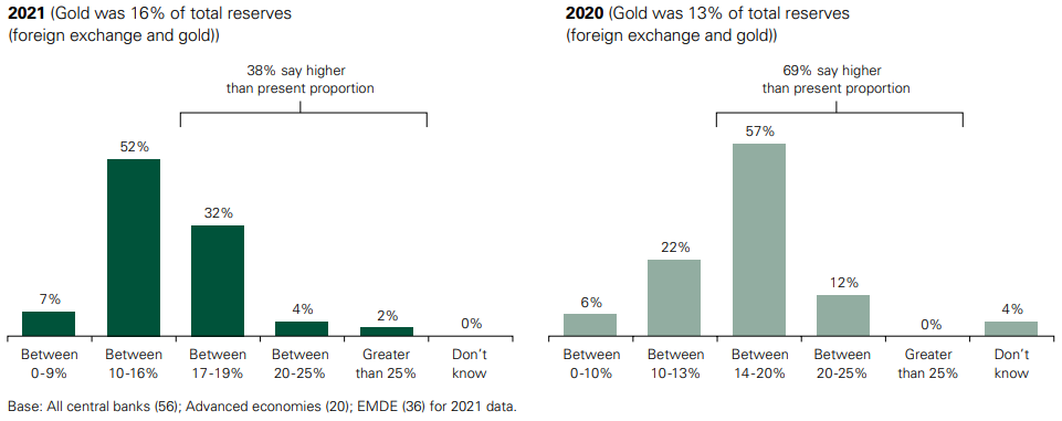 A quarter of central banks want to upgrade their gold holdings (Source: World Gold Council)