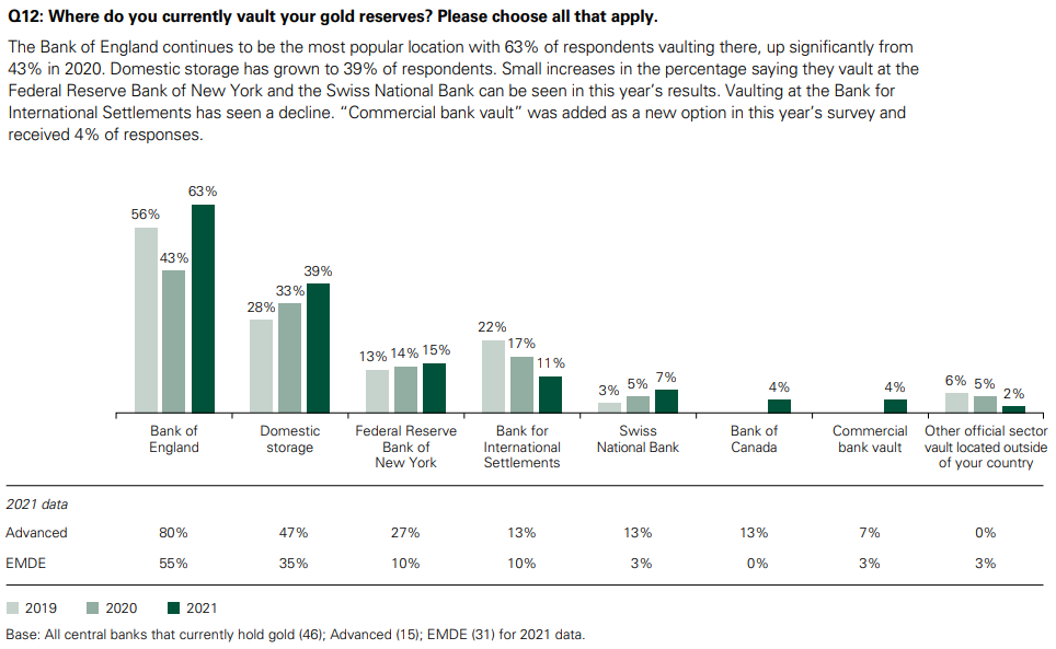 Many central banks store their gold with the Bank of England (Source: World Gold Council)