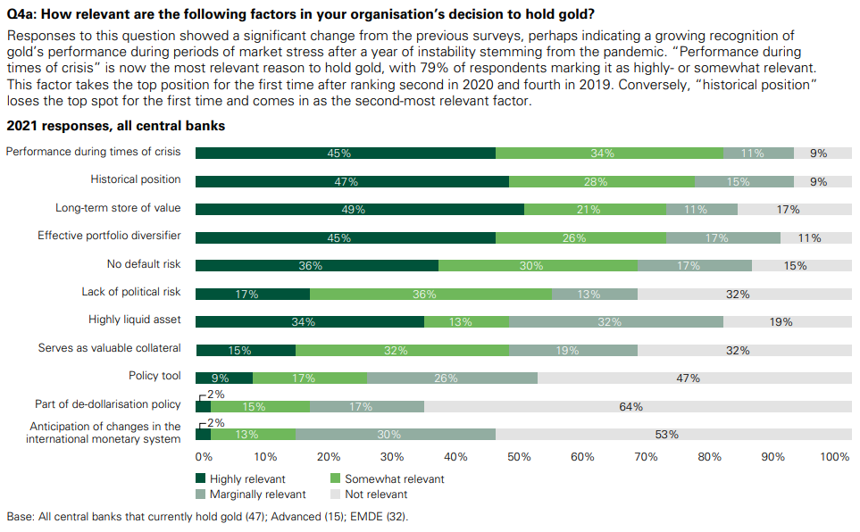 Reason why central banks hold gold stocks (Source: World Gold Council)