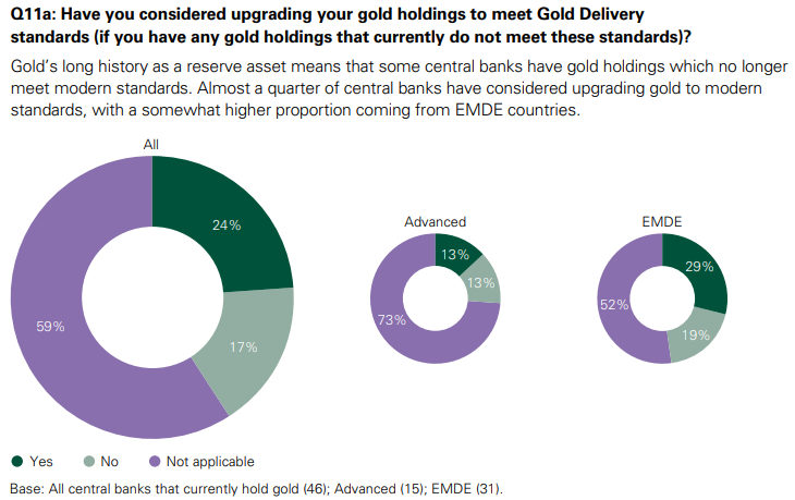 It is also striking that many emerging economies are considering upgrading the quality of their gold reserves. Some central banks still have old Gold bars, which sometimes do not meet the highest standards in terms of weight and purity. Also, several central banks still hold gold coins (whether or not melted down into bars) in their stocks.