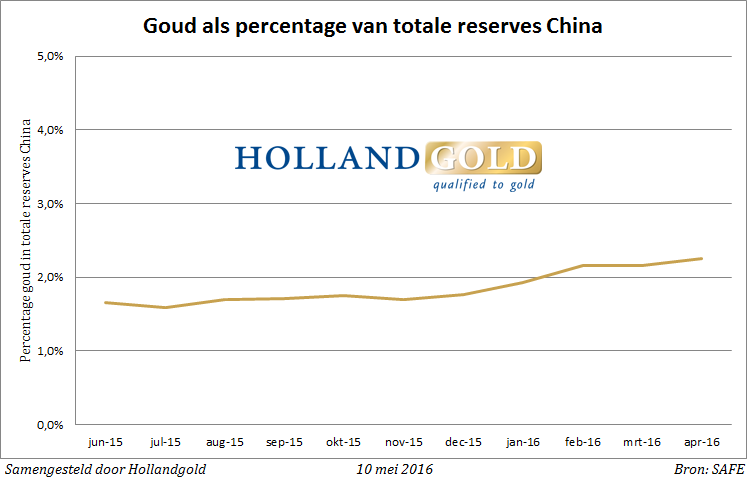 Chinese gold stock rises to 2.25% of total reserves (Source: SAFE)
