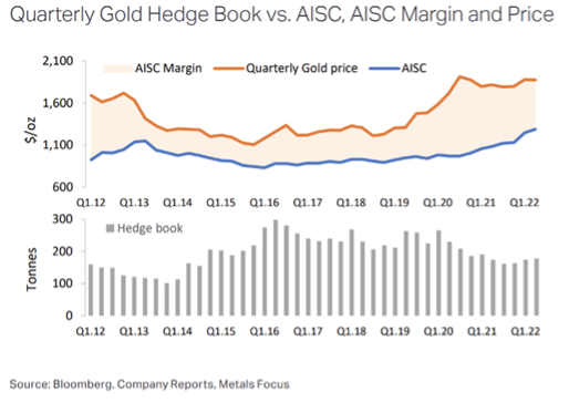 Higher gold prices lead to less hedging (source: Metals Focus)