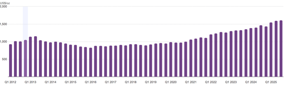 All-In Sustaining Cost of gold. (Source: World Gold Council)