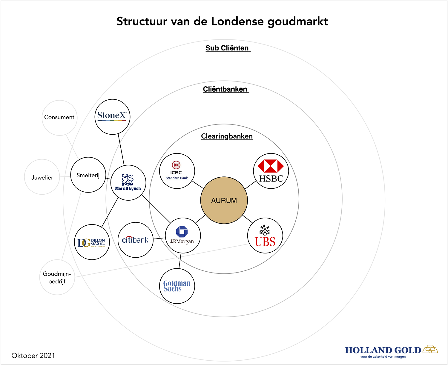 Clearing through AURUM is supervised and managed by London Precious Metals Clearing Limited (LPMCL). The clearing banks participating in AURUM (the LPMCL members) are HSBC, ICBC Standard Bank, JP Morgan and UBS. Other banks and participants in the London gold market are connected to the clearing banks in one way or another. These banks settle transactions in the London gold market.