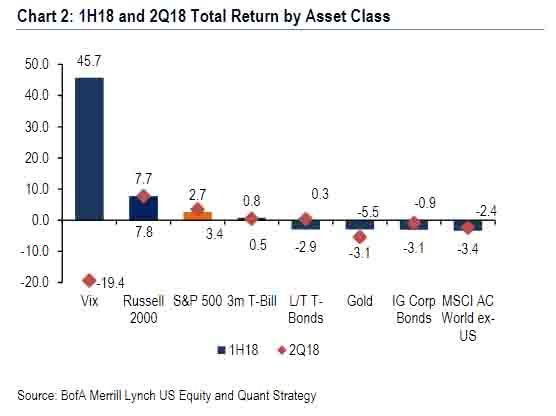 If we take a step back and compare the performance of the S&P 500 index with that of other asset classes, we see that long-term government bonds and precious metals have also yielded little this year. As an investor, you could get much more returns in the first half of this year with the VIX, a well-known gauge of volatility in the stock market. This gauge benefited from the correction at the beginning of the year and from increased uncertainty due to tightening central bank policy and the threat of a trade war.