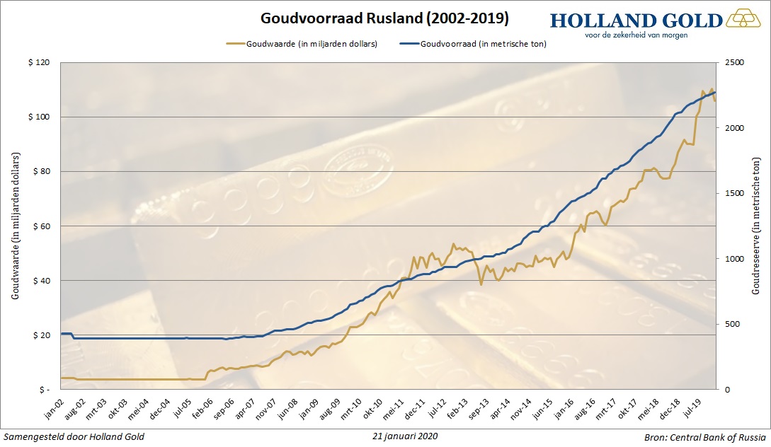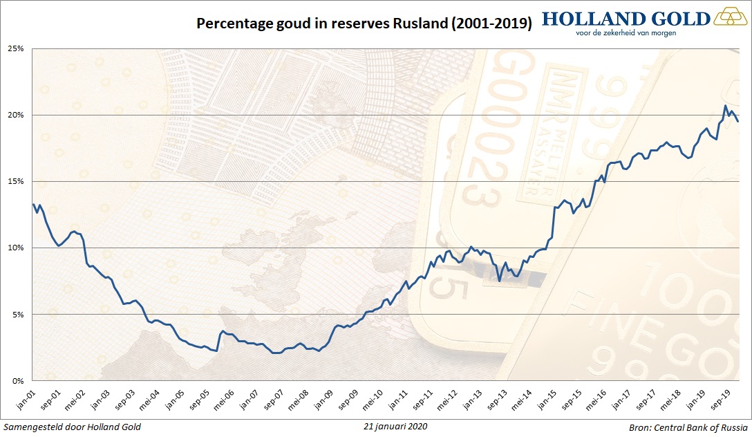 The Russian central bank's gold strategy has not done the country any harm, as the Gold price has risen sharply over the past year. In the past year alone, this has resulted in $20 billion in value appreciation. At the moment, the central bank holds about a fifth of its reserves in the form of precious metals, compared to only 3% at the outbreak of the financial crisis.