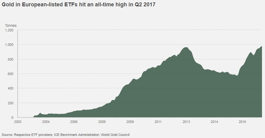 Stocks of gold ETFs in Europe to new all-time high (Source: World Gold Council)