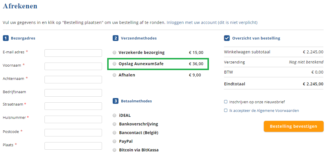 Ook als u edelmetalen koopt bij Holland Gold heeft u de mogelijkheid dat veilig op te slaan. Kies bij het bestellen voor 'Opslag AunexumSafe' of neem contact met ons op als u reeds edelmetalen in huis heeft en u dat graag veilig wilt opslaan. Wilt u meer weten over de opslag van edelmetalen? Kijk dan op de website van AunexumSafe of neem contact met ons op. Dat kan via klantenservice@hollandgold.nl of telefonisch tijdens werkdagen op +31(0)88 468 8400.