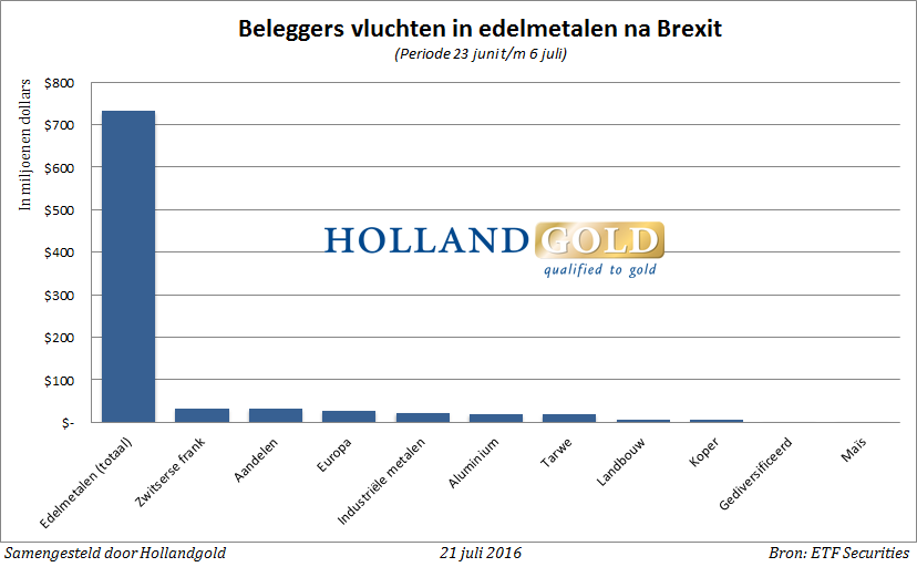 Na de Brexit vluchtte er ruim $700 miljoen richting edelmetaal ETF's