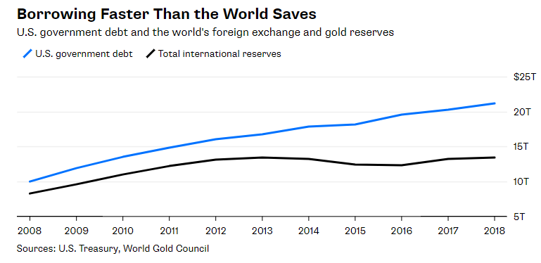 Centrale banken houden minder dollarreserves aan (Bron: Bloomberg)