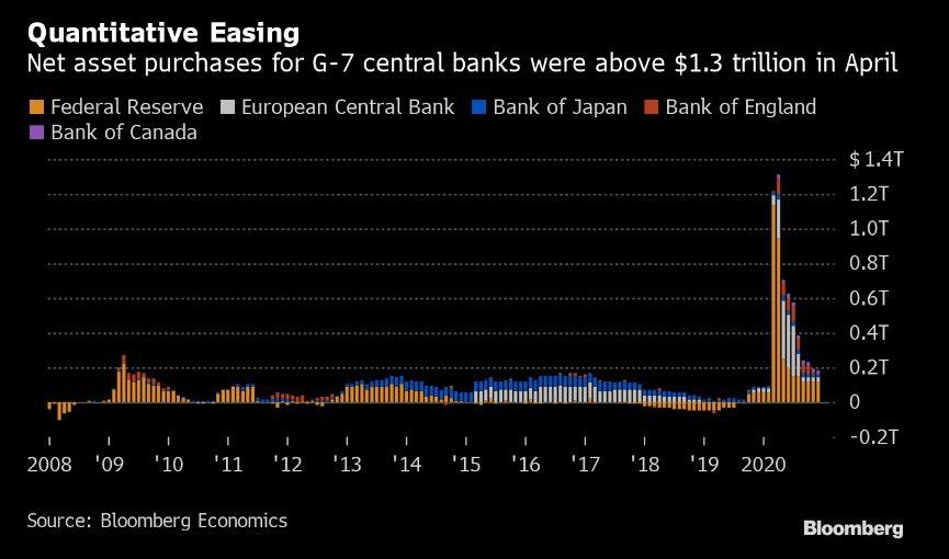 Centrale banken kopen op ongekend grote schaal obligaties op (Bron: Bloomberg)