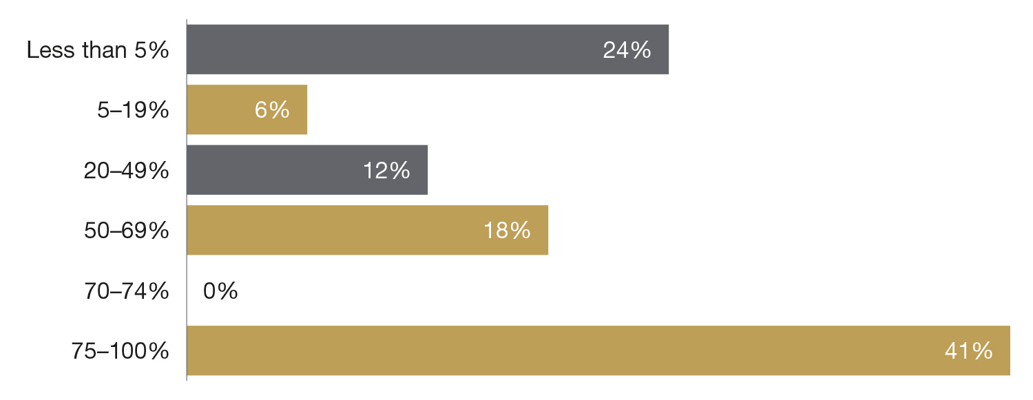 Opvallend is dat er grote verschillen zijn in het percentage van de goudvoorraad dat centrale banken in het buitenland bewaren. Voor 41% van de ondervraagden is dat bijna hun volledige goudreserve, bij een kwart is dat nog geen 5%.