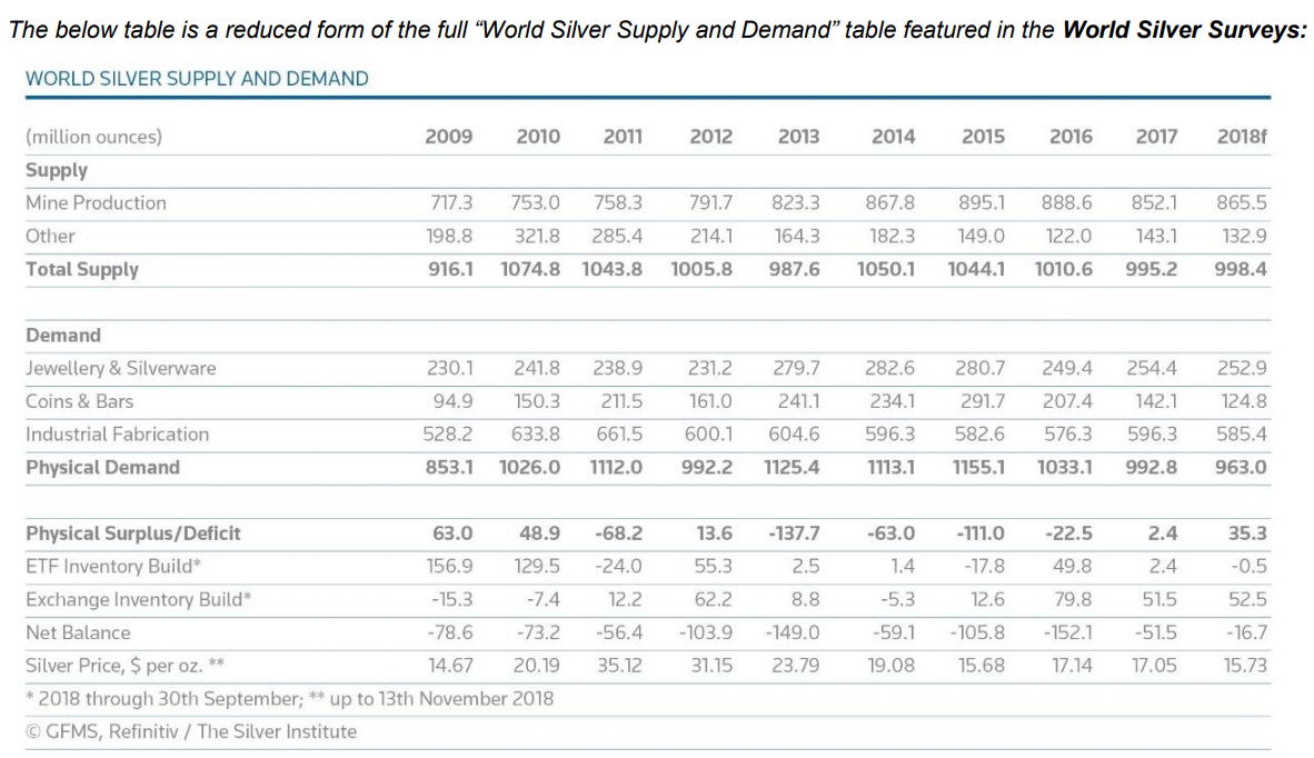 Vraag en aanbod van zilver sinds 2009 (Bron: Silver Institute)