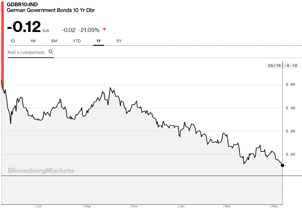 Rente op Duitse staatsleningen blijft dalen (Bron: Bloomberg)
