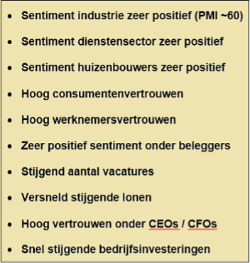 Financiële markten worden echter gedreven door liquiditeit. Het afgelopen jaar heb ik al vaak geschreven dat wij juist voorzichtig gaan worden als het met de economie te goed gaat als gevolg van te veel stimulering door centrale banken. Want dan volgt inflatie door oververhitting en moeten centrale banken (zoals in 2022) massaal op de rem trappen.