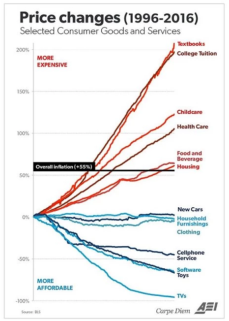 Het is nonsens om te claimen dat de inflatie in de Verenigde Staten met slechts één procent per jaar stijgt. De kosten van levensonderhoud voor een doorsnee huishouden gaan veel harder omhoog, denk aan verzekeringen, transportkosten en collegegeld. Huishoudens worden financieel uitgeknepen, maar daar kijken centrale banken niet naar.
