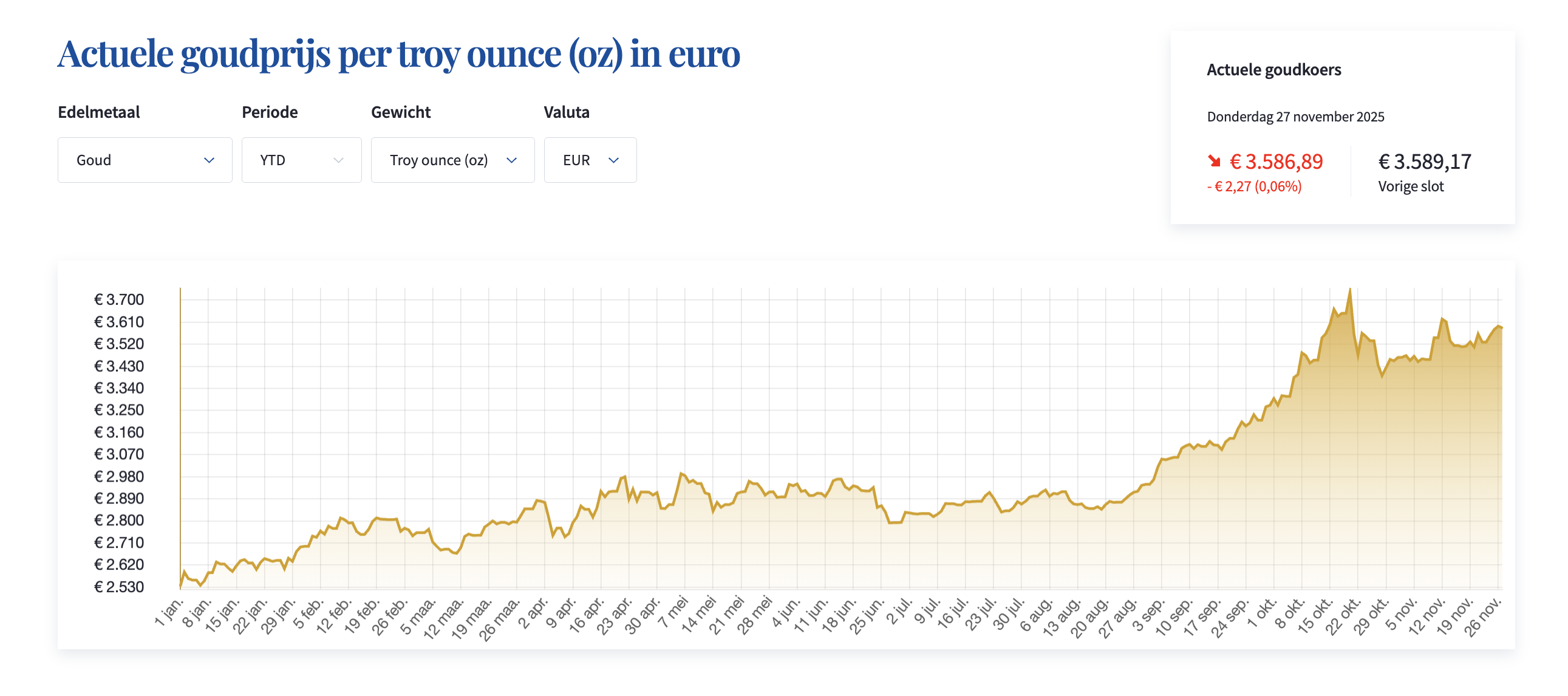 Goudprijs sinds begin dit jaar, in EUR (Holland Gold)