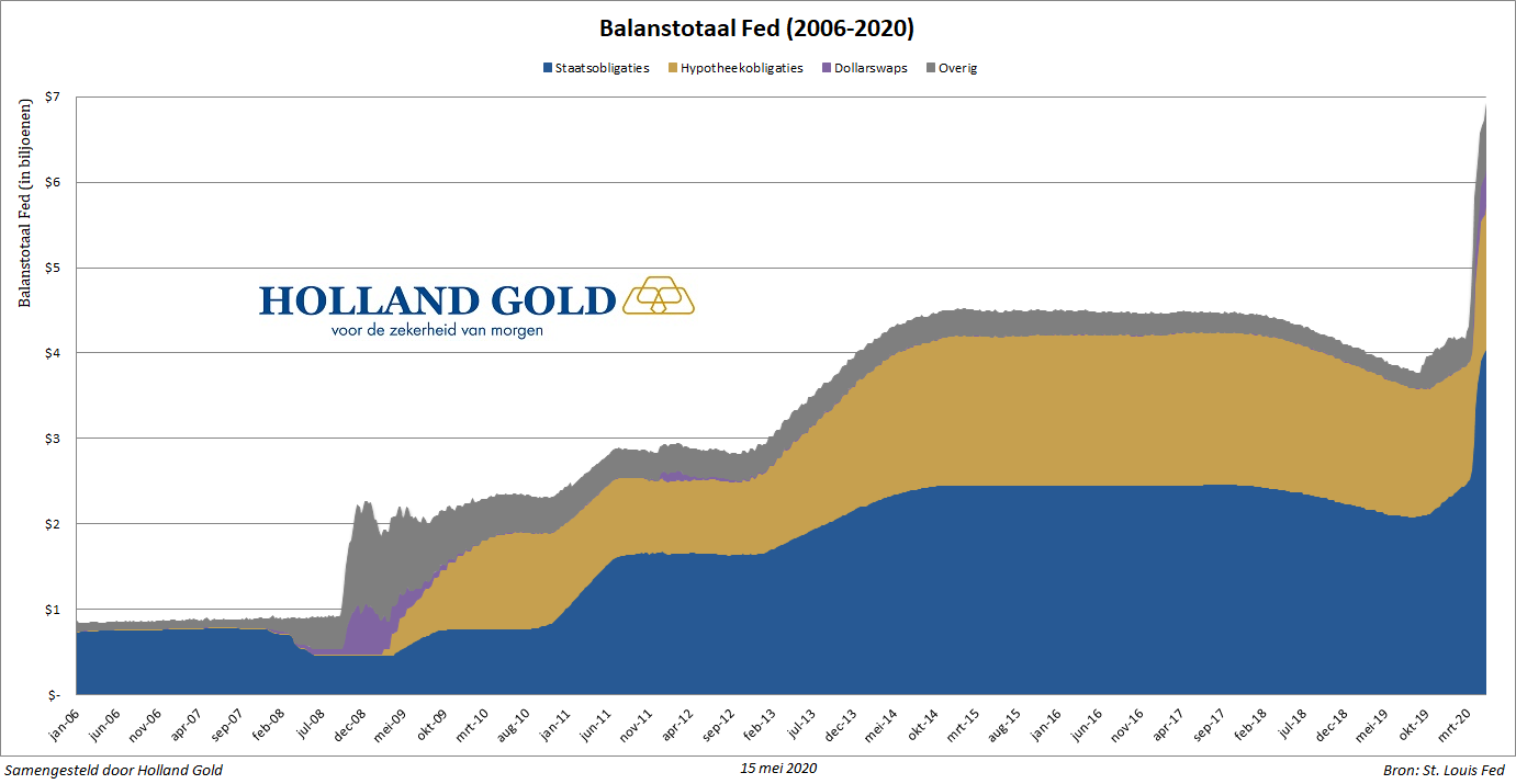 De balans van de Federal Reserve is door diverse opkoopprogramma's verder gestegen tot bijna $7 biljoen. De centrale bank begon in maart voor honderden miljarden dollars aan staatsobligaties en hypotheekobligaties op te kopen. Daarnaast kondigde de centrale bank een nieuw opkoopprogramma voor bedrijfsleningen aan, dat deze week werd opgestart. Hiermee wil de Fed de druk op de obligatiemarkt verlichten en bedrijven ondersteunen die door de coronacrisis in de problemen zijn gekomen.