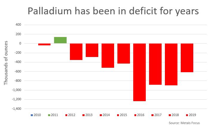 De prijs van palladium zit al twee jaar in een stijgende trend. De vraag naar het edelmetaal is door het gebruik in katalysatoren van auto's inmiddels groter dan het aanbod. Door strengere milieu-eisen moeten autofabrikanten meer platina en palladium gebruiken. Beide edelmetalen worden verwerkt in katalysatoren die de uitstoot van schadelijke uitlaatgassen verminderen.