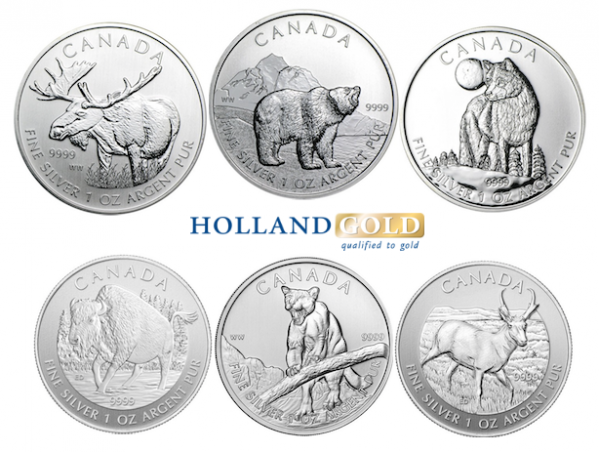 Tussen 2011 en 2013 lanceerde de Royal Canadian Mint een nieuwe serie van 'Wildlife' zilveren munten. Deze prachtige munten staan in het teken van de wilde dieren die in Canada leven en zijn allemaal in een gelimiteerde oplage van 1 miljoen stuks geslagen. Wilt u deze collectie in huis halen, dan bent u bij Hollandgold aan het juiste adres. We hebben alle zes munten uit deze serie gebundeld en leveren deze in de unieke Hollandgold verpakking.