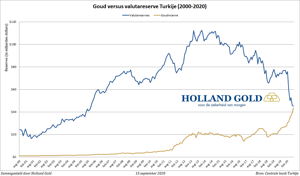 De goudaankopen van de Turkse centrale bank zijn opmerkelijk, omdat het land er economische niet zo sterk voor staat. De waarde van de Turkse lira is de laatste jaren sterk gedaald, maar dat weerhoudt de centrale bank er niet van om nog meer goud te kopen. Dit jaar heeft de centrale bank al meer dan 170 ton goud aan haar strategische reserve toegevoegd, meer dan bijvoorbeeld Rusland en China. Volgens de laatste cijfers beschikt het land inmiddels over een goudvoorraad van 602 ton, bijna evenveel als Nederland.