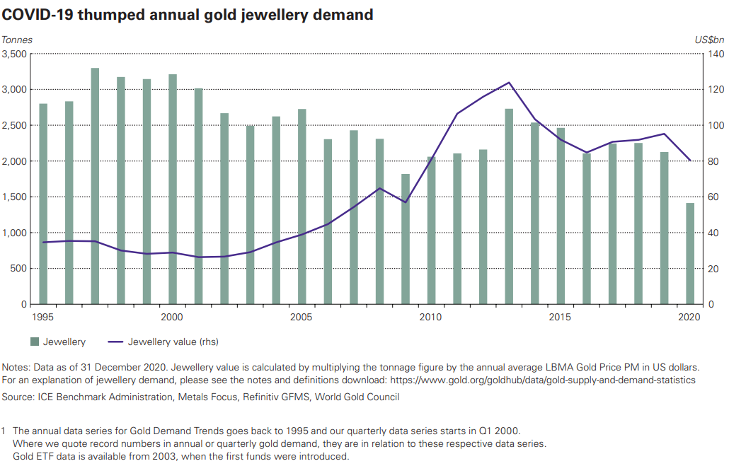 Minder vraag naar sieraden door coronacrisis (Bron: World Gold Council)