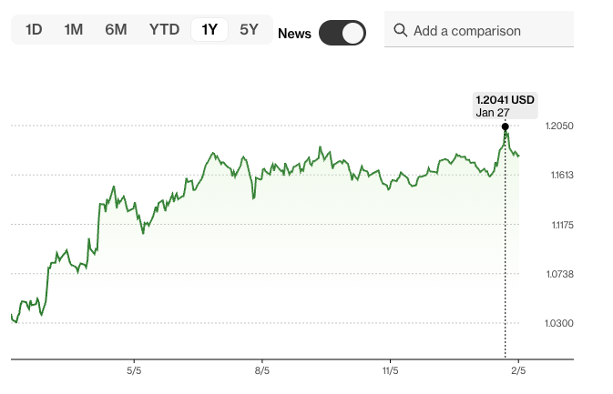 Wisselkoers EUR-USD 6 februari (bron: Bloomberg)
