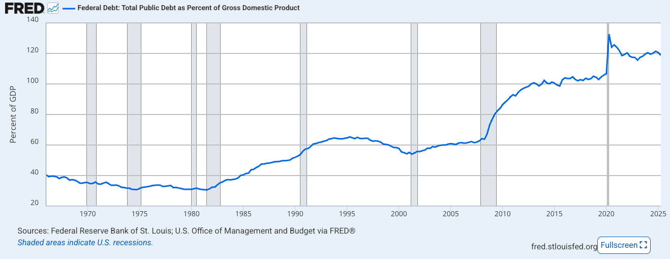 De rentelasten vormen inmiddels de derde grootste uitgavenpost van de Amerikaanse overheid, na sociale zekerheid en zorg. Met 3,2 procent van het bbp drukken deze lasten zwaar op de economie en dit aandeel zal verder stijgen. In het begin van begrotingsjaar 2026 kwamen de rentelasten zelfs uit als tweede grootste begrotingspost, boven Medicare en defensie. Tussen begrotingsjaar 2019 en 2025 steeg het aandeel van rente in de totale uitgaven van de federale overheid van minder dan één dollar op tien naar meer dan één dollar op 6,5.