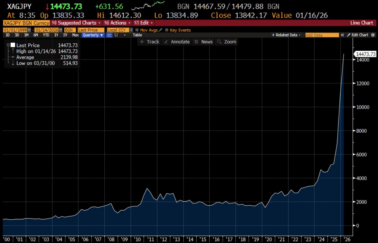 De prijs van zilver in Japanse yen (bron: Robin Brooks / Bloomberg)