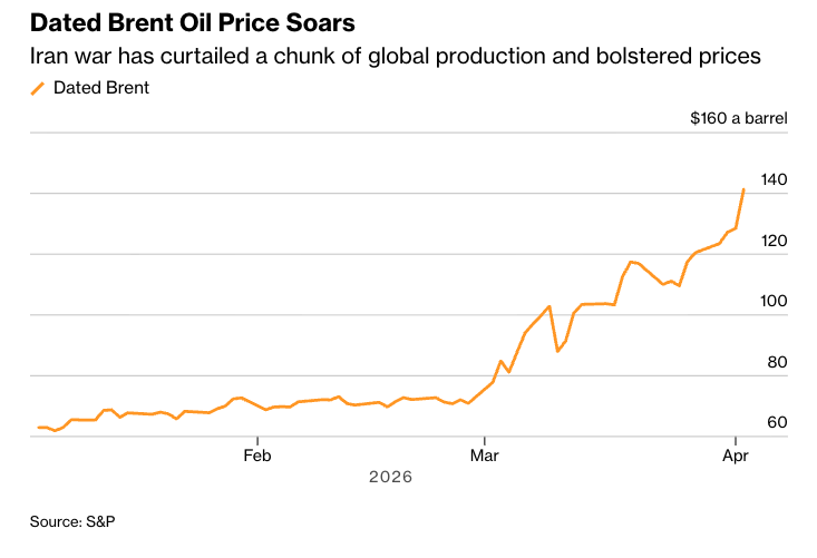 Deze week steeg de prijs van ruwe olie voor directe levering naar het hoogste niveau sinds 2008. De zogeheten Dated Brent, de prijs voor fysieke leveringen uit de Noordzee, bereikte donderdag $141,36 per vat en overtrof daarmee de niveaus die werden gezien tijdens de Russische invasie van Oekraïne. In de vorige weekselectie kon u nog lezen dat Larry Fink, CEO van BlackRock, een wereldwijde recessie voorspelt bij een langdurige olieprijs van $100 tot $150 per vat.