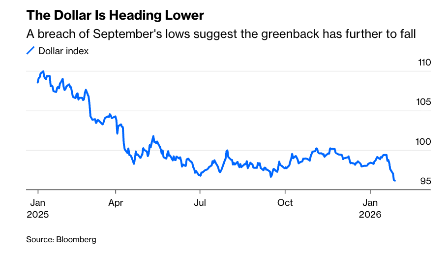 Waardeverlies dollar sinds 2025 (bron: Bloomberg)