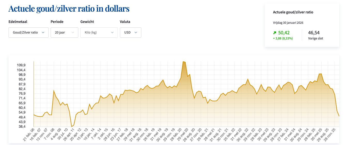Goud-zilverratio op laagste niveau sinds 2011 (bron: Holland Gold)