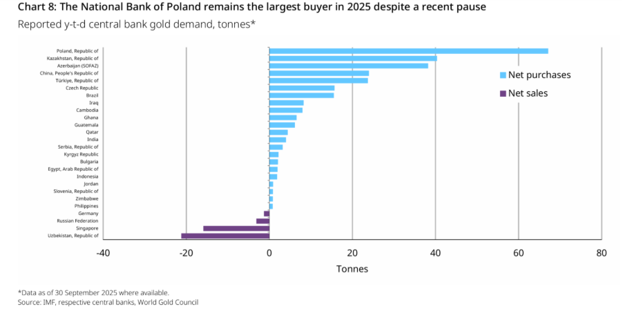 Voor het eerst sinds 2021 breidde de centrale bank van Brazilië haar goudpositie uit met 15 ton. De grootste koper gedurende het kwartaal was Kazachstan met een uitbreiding van 18 ton. Voor het hele jaar blijft de Nationale Bank van Polen de grootste koper van goud onder de centrale banken. Het land wil haar goudreserves verhogen van 20 naar 30 procent; momenteel zit het op 24 procent. Dit geeft aan dat de Poolse centrale bank nog lang niet klaar is met het uitbreiden van haar goudpositie.