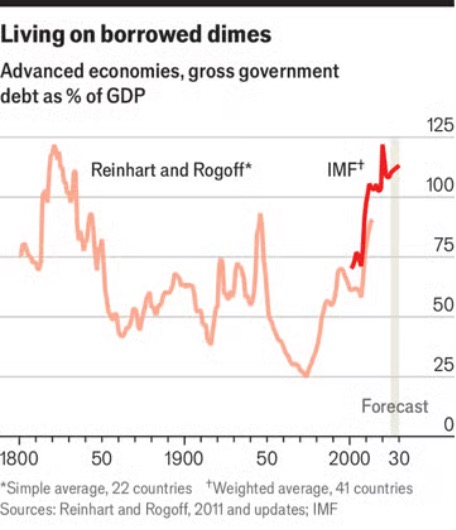 Een reeks crisissen verklaart deels deze hoge schuldenlast: de financiële crisis van 2007-2009, de covid-19-pandemie en de Russische inval in Oekraïne. Daarnaast is er wereldwijd politiek weinig animo om de schuldenlast te verlagen en te bezuinigen. Elke poging om tot een verlaging van het begrotingstekort te komen wordt de kop ingedrukt.