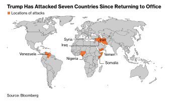 Trumpregering heeft al in zeven landen aanvallen uitgevoerd in minder dan een jaar tijd (Bron: Bloomberg)
